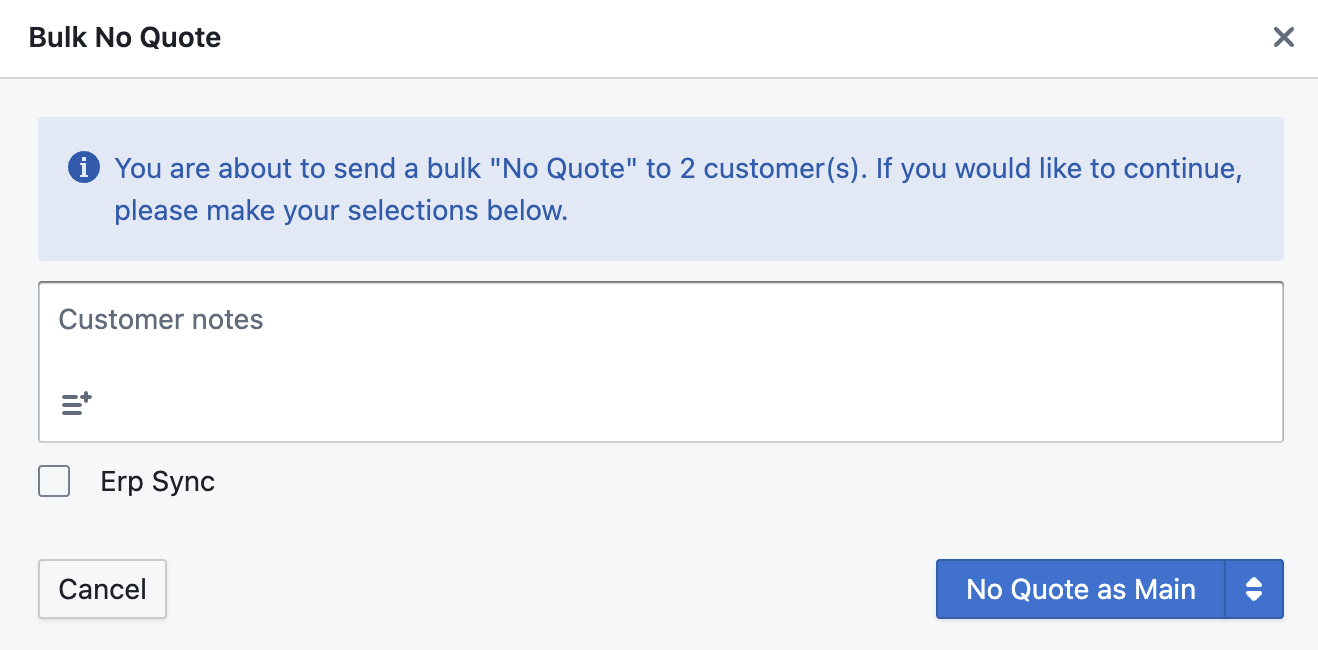 The No Quote bulk action button allows you to send a No Quote to all selected RFQs: