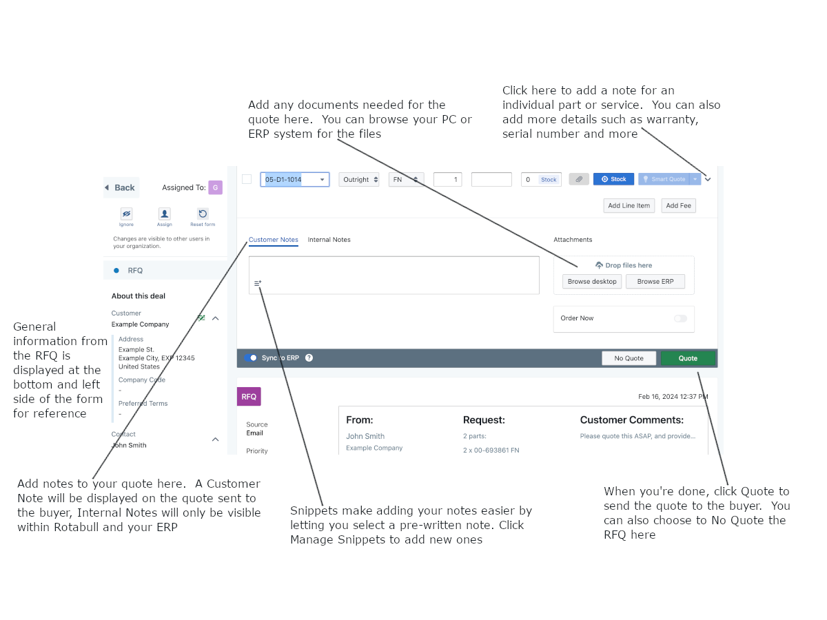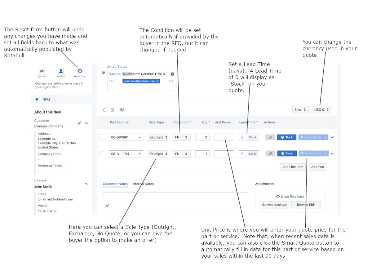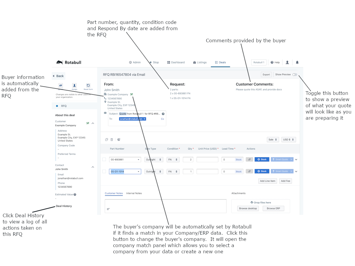 - Rotabull automatically adds buyer information to the RFQ response form: